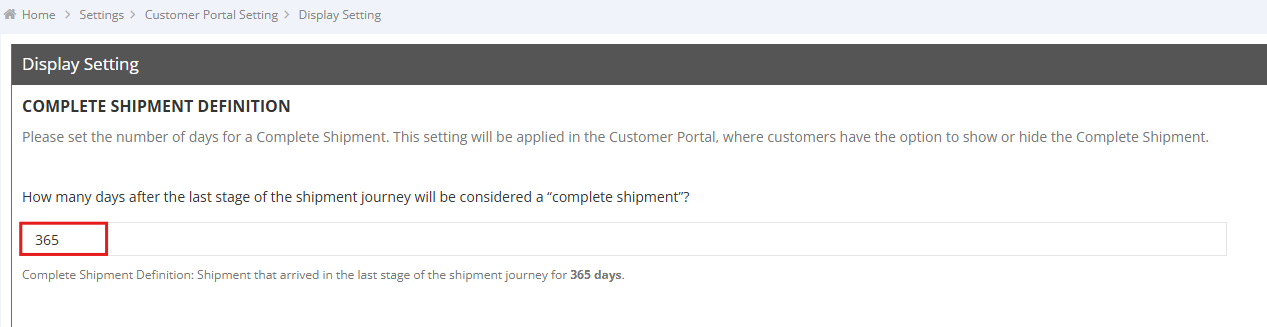 Customer Portal Display Settings enable you to control when shipments are marked as completed, affecting their visibility in the portal's list view. This manual explains the default rules, how to manually mark shipments as complete, and how to adjust the completion timeframe to suit your needs.