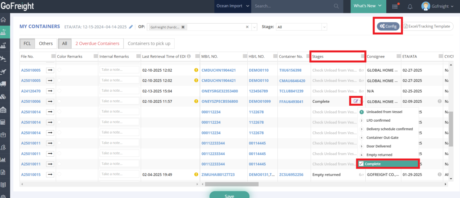 - For example, in CY-to-CY shipments, the final stage is "Unloaded from Vessel," and the shipment will be marked as complete 45 days after this stage.