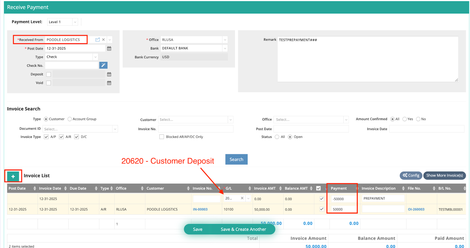 - Create the invoice with Invoice Post Date: Dec 31, 2025