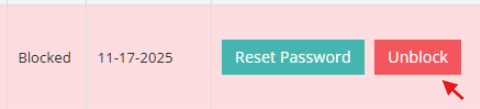 - Locate the locked user account and click Unblock.