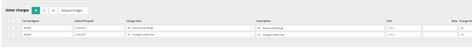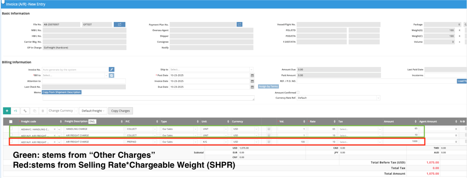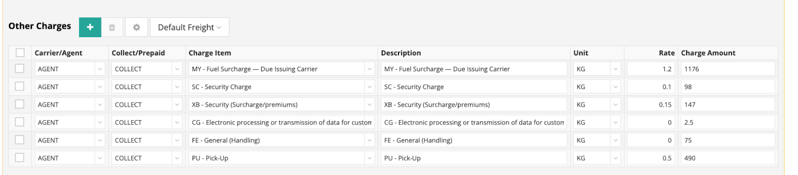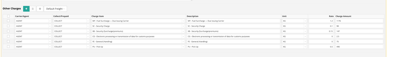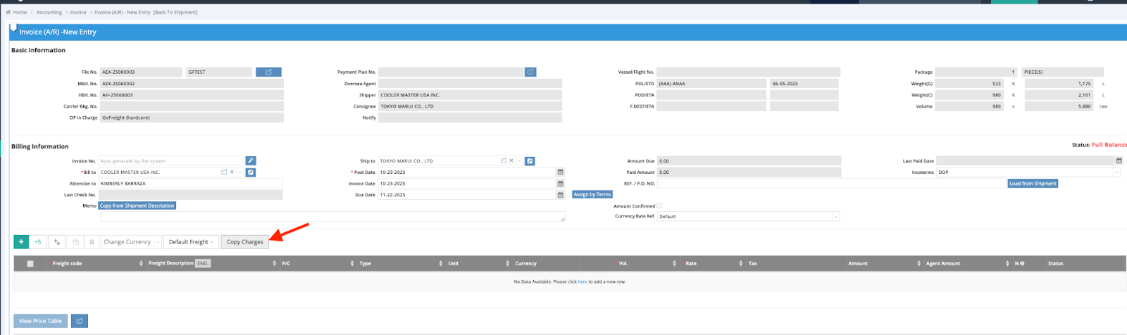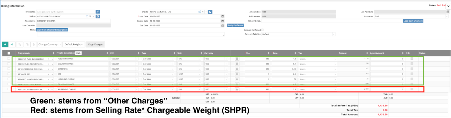 - All Other Charges and the Air Freight Charge are copied automatically.
