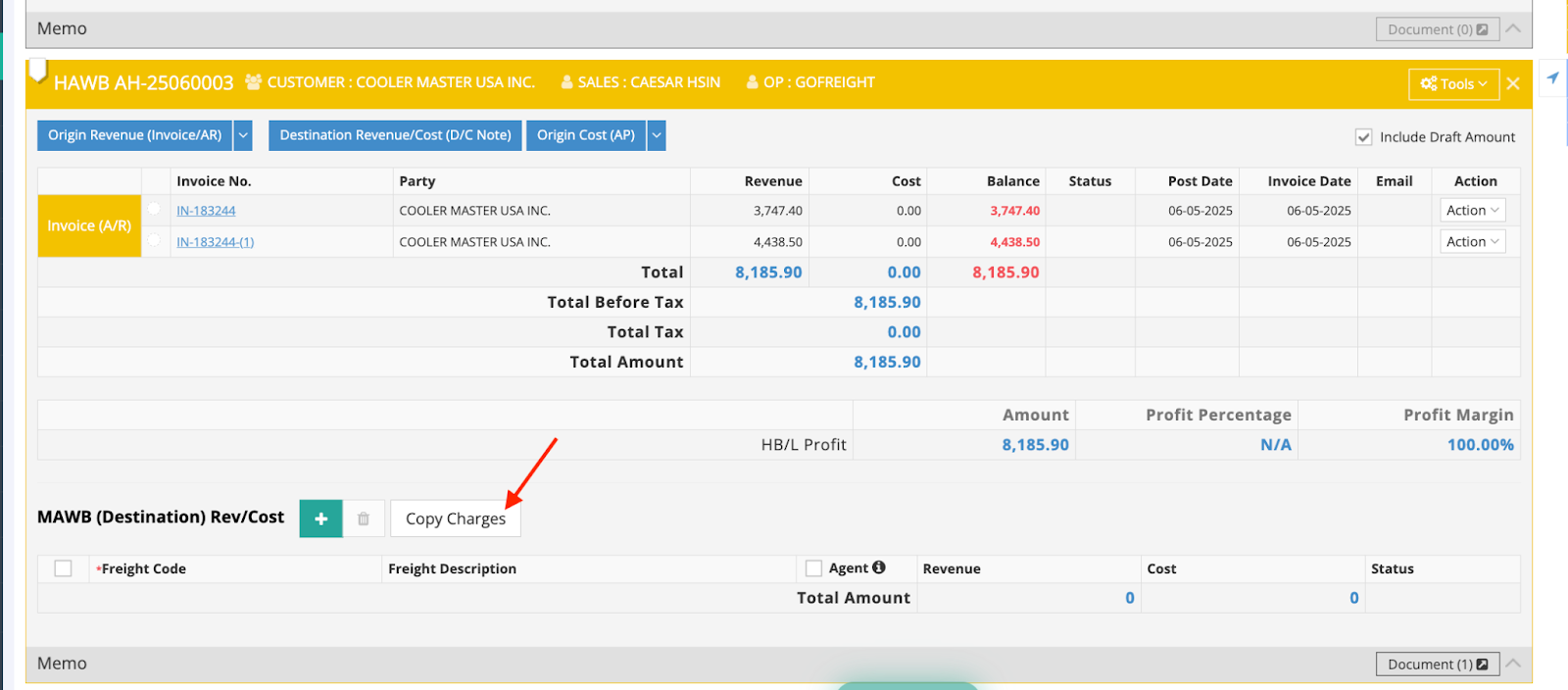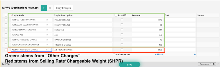 - MAWB (Destination) Rev/Cost area under the A/R Accounting tab