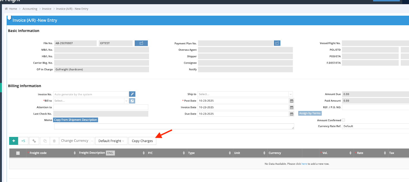 We’re excited to introduce an enhancement to the Copy Charges feature. This improvement streamlines your billing process by automatically copying freight charges, reducing manual input, and saving time.
