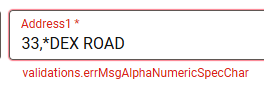 If invalid characters are detected, an alert message will appear in red below the relevant fields, showing which special characters are accepted.