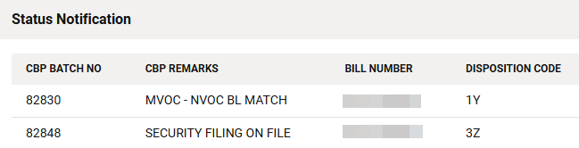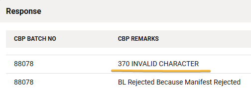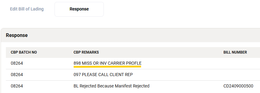 If a B/L has been rejected, the CBP remarks can be found under the Response section.