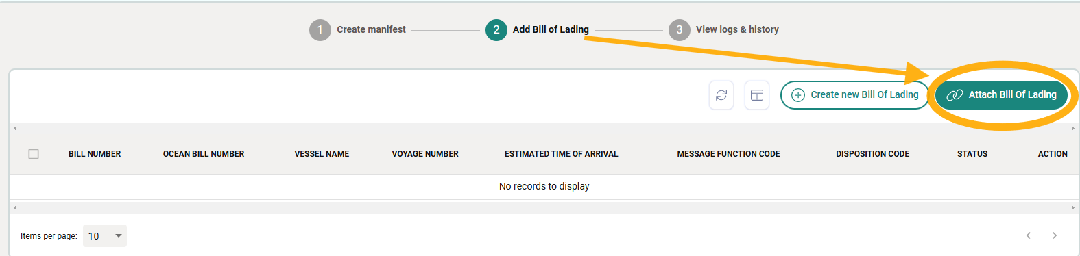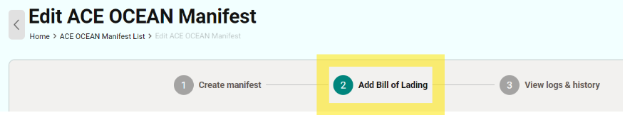 - Go to the Manifest and click ‘2. Add Bill of Lading” at the top