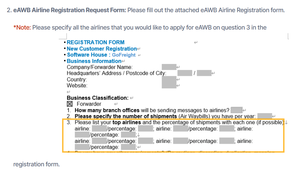 *Note: In Question 3 of the registration form, specify all the airlines you would like to apply eAWB to.