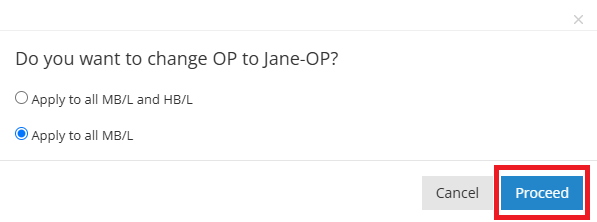 1. Select the shipment from the list view, such as the Master B/L List or House B/L List, that you would like to change the OP for.2. Click on “Change OP” to select an OP in charge.
