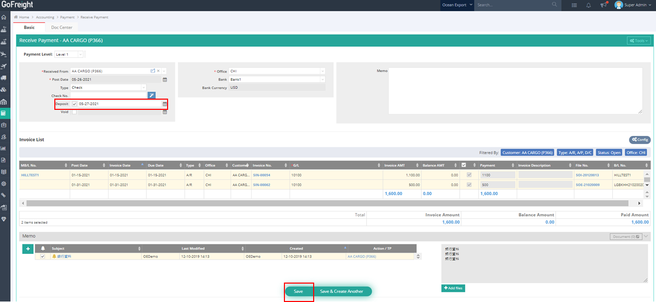 This article follows up on information provided after receiving a payment. A few days after you receive the payment, it will be deposited in your bank account. Here’s how to deposit that payment in GoFreight: