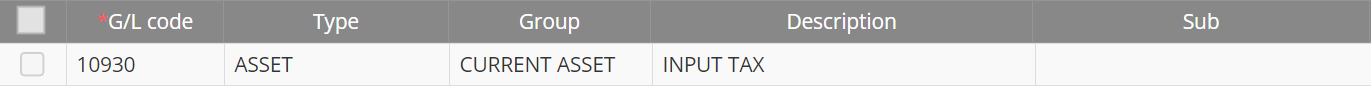 - Assign GL Code to Cost: Input Tax