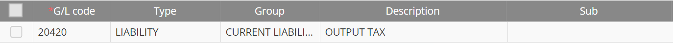 - Assign GL Code to Revenue: Output Tax