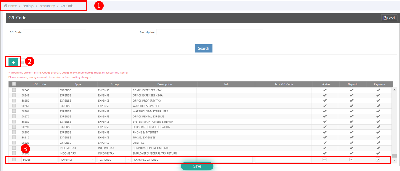 Please note that once a G/L Code is created, it cannot be deleted but can only be deactivated. Therefore, we strongly recommend consulting with your finance or accounting department, or seeking professional advice from your CPA (Certified Public Accountant), before creating a G/L Code.