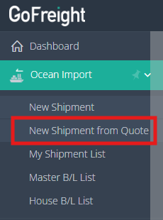 - Navigate to the "Ocean Import" section and select "New Shipment from Quote" on the navigation bar.