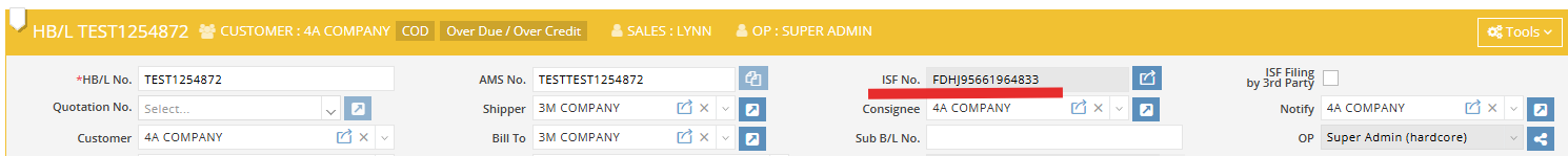 - To review the ISF, click the blue arrow icon in the ISF field. This action will redirect you to the corresponding ISF for further review.