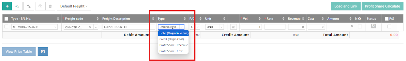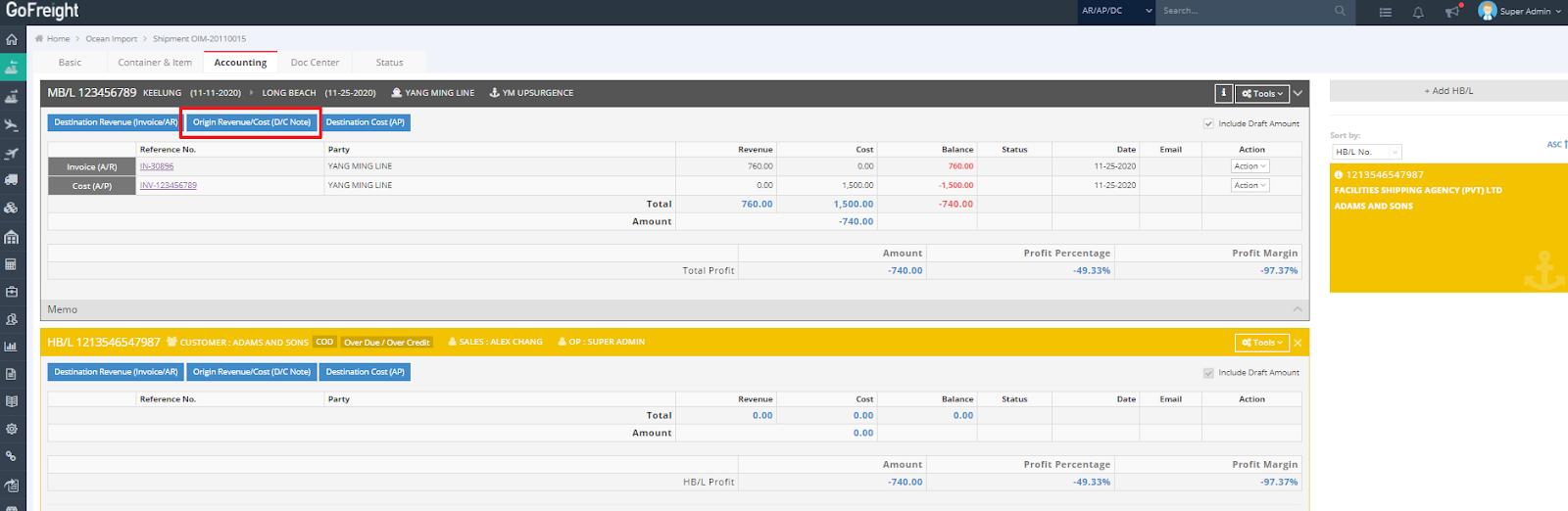 - In the shipment's "Accounting" tab, click on “Origin Revenue/Cost (D/C Note).”