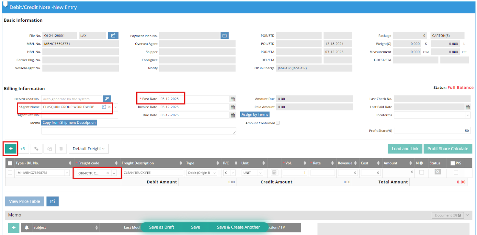- Save the DC note as a draft or simply click “Save” to finalize the D/C Note.