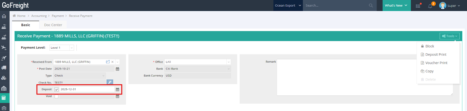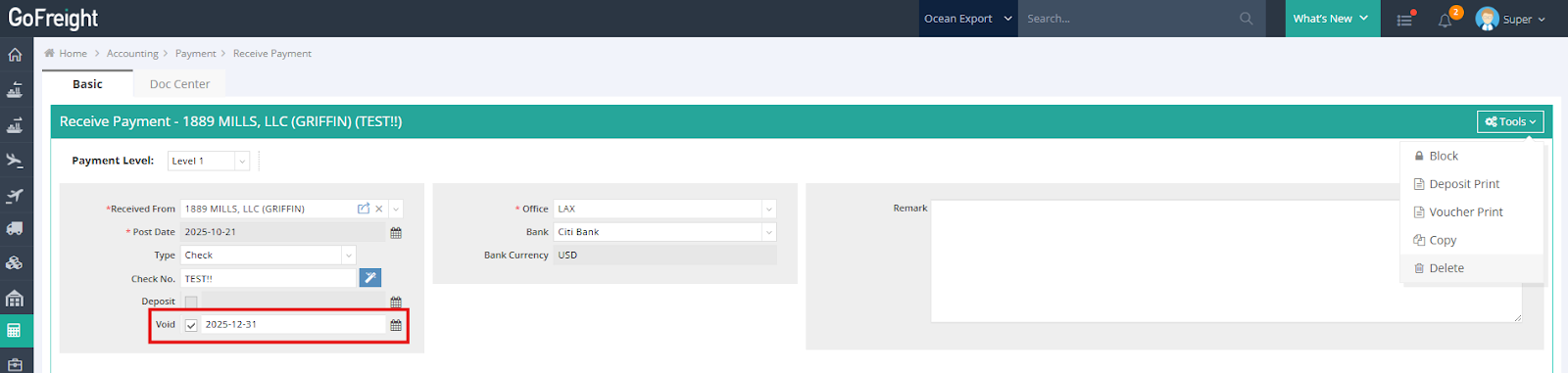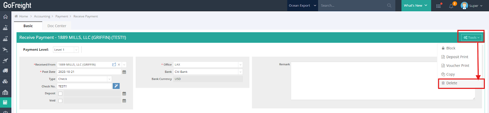 Deleting in GoFreight is permanent. Once a payment is deleted: