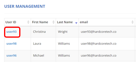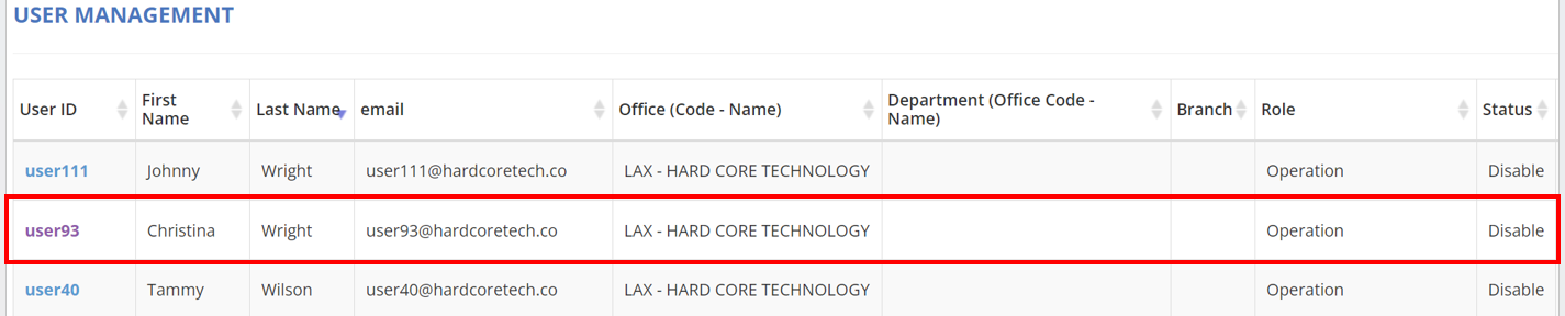 7. Return to "User Management" to verify that the status of the user ID now displays as "Disabled".