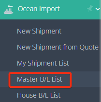 The overview lists are available under Master B/L List ( Bill of Lading), House B/L List, and My Shipment List across all modules, including Ocean Import, Ocean Export, Air Export, and Air Import.