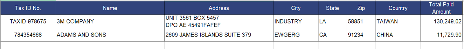 Note: Only payments will be calculated in the report. - Review the 1099 Report Sample: