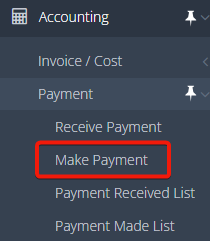 1. Navigate to "Accounting" > "Payment" > "Make Payment" on the navigation bar.