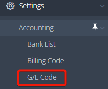 - Navigate to "Settings" > "Accounting" > "G/L Code" on the navigation bar.