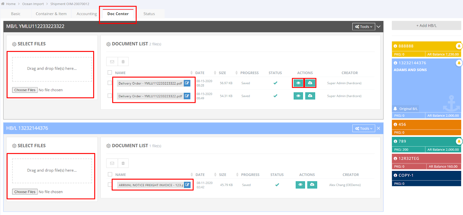 To manage shipment documents such as Master Bill of Lading (MBL), House Bill of Lading (HBL), invoices, packing lists, and commercial invoices, you can utilize the "Doc Center." This centralized feature makes document management efficient and straightforward.