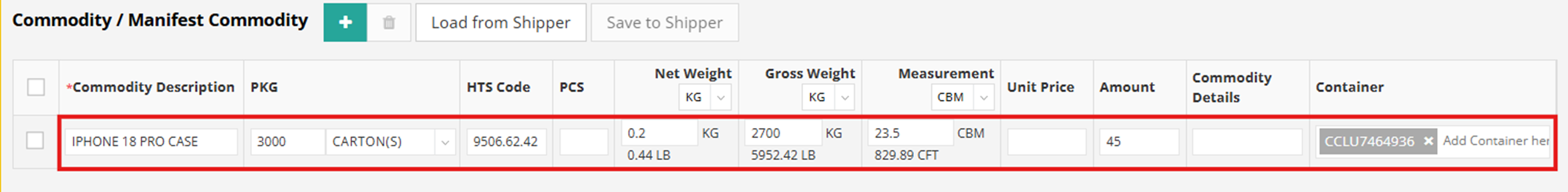 Note: You can repeatedly upload files to add container and commodity information to the shipment, but you cannot update existing container or commodity information.