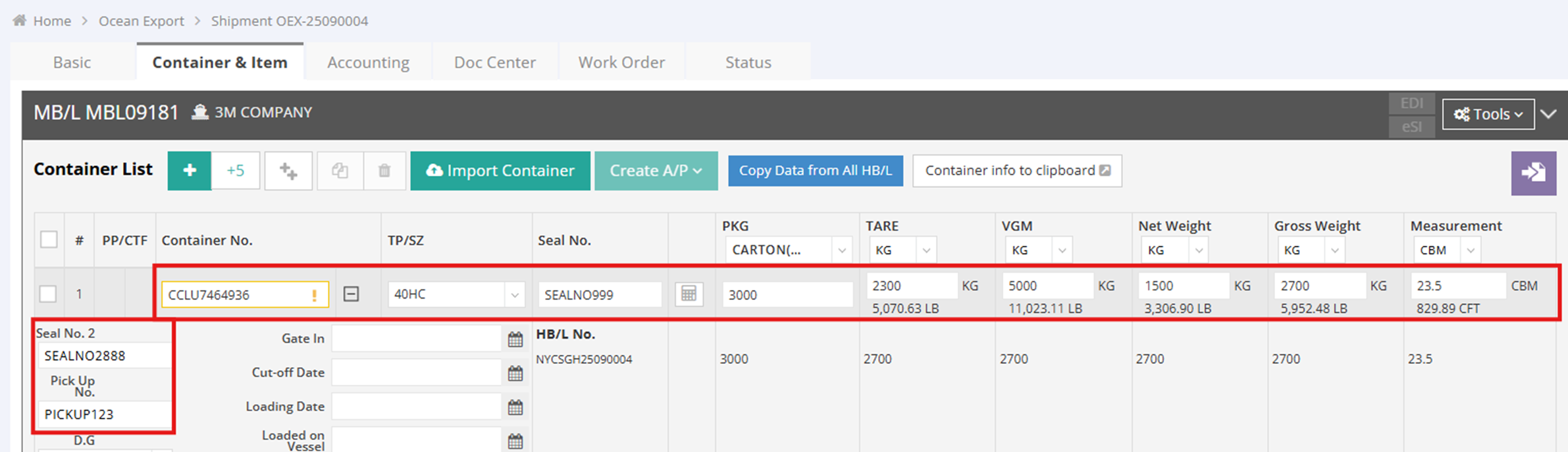 You can now import container information using an Excel file at the Ocean Export shipment MBL level.