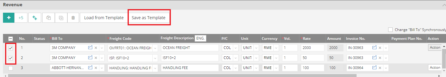 If you would like to save this invoice as your template, select the billing item lines which you would like and click on the “Save as Template” button to pull out the AR Billing Module setting pages.