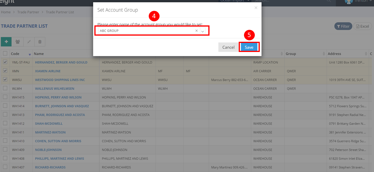 - Select the trade partners for which you want to create an account group.