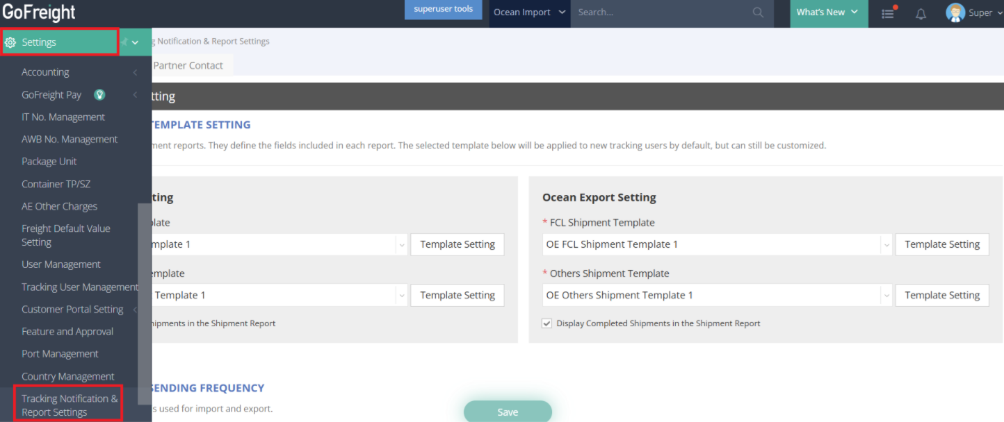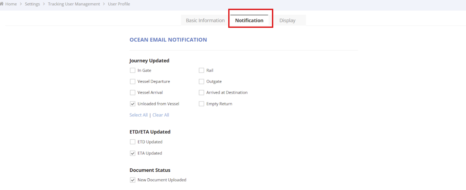 - Select Tracking Notification & Report Settings