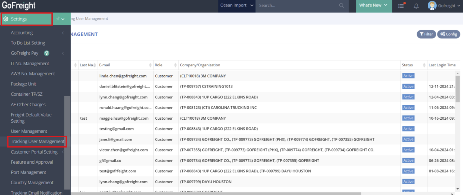 - Go to Settings > Tracking User Management.