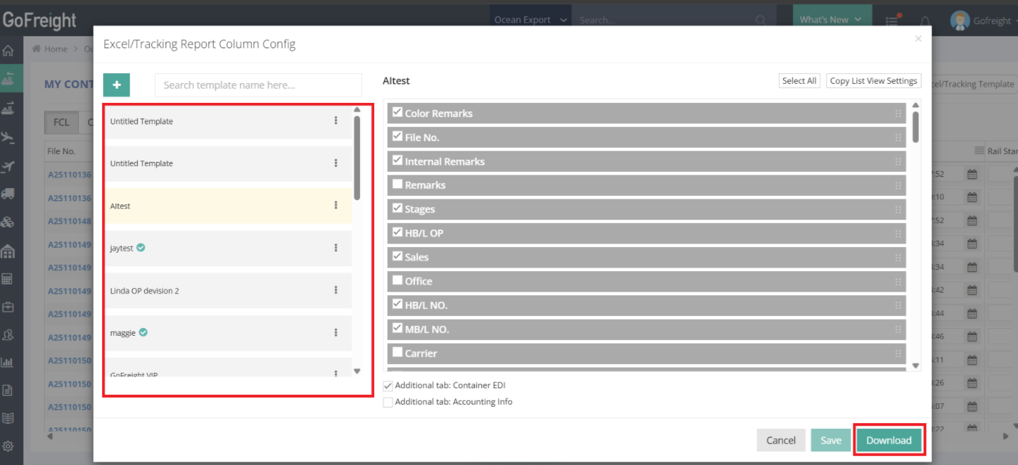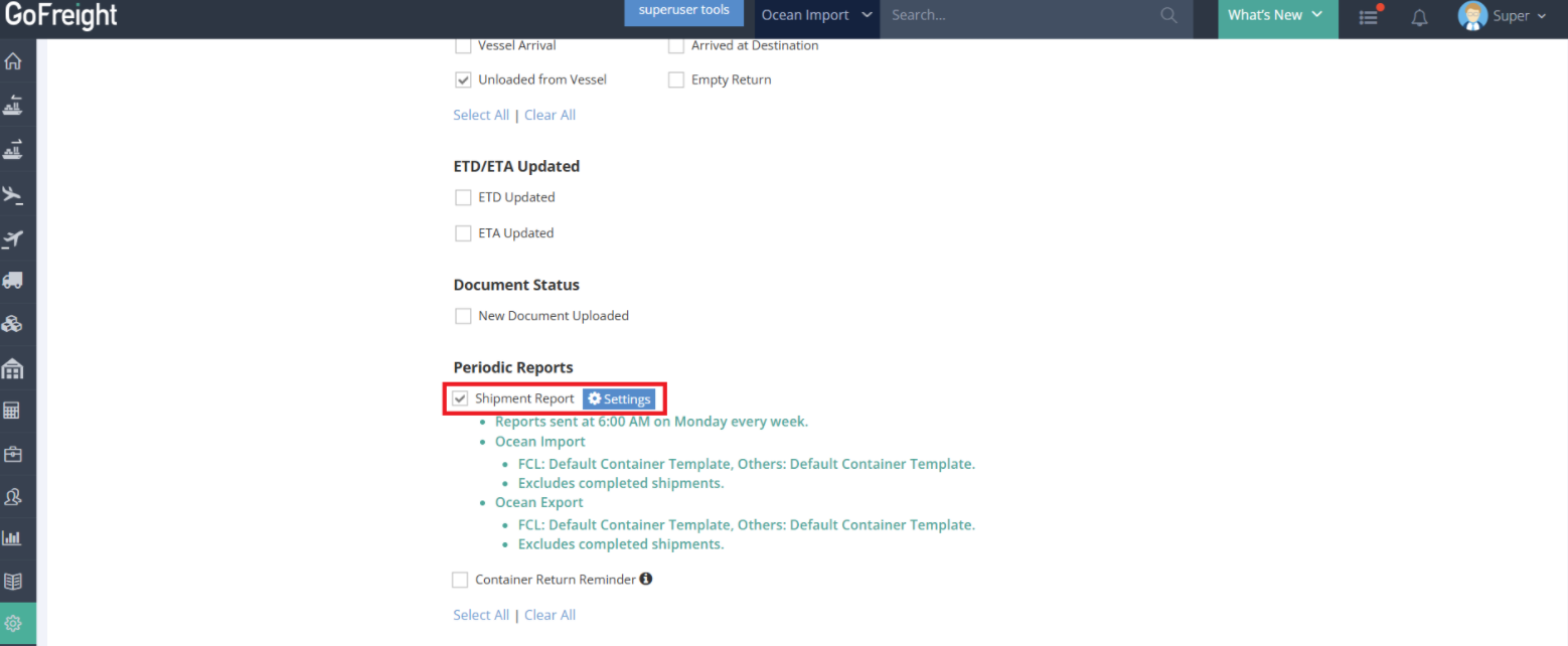 This guide explains how to configure customized shipment reports for Ocean Import and Ocean Export shipments.
