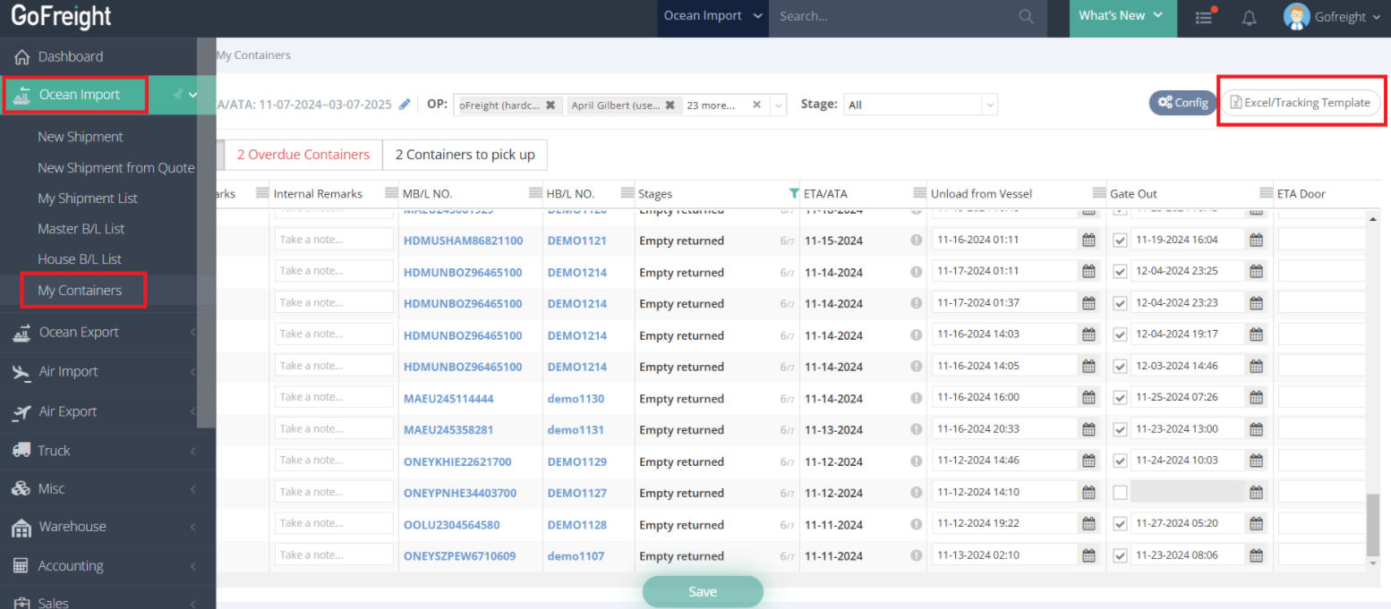 - Navigate to My Containers under Ocean Import.