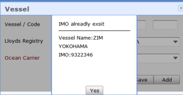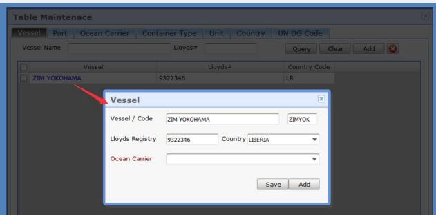 - If not, click "Enter" to add a new vessel in a pop-up window.