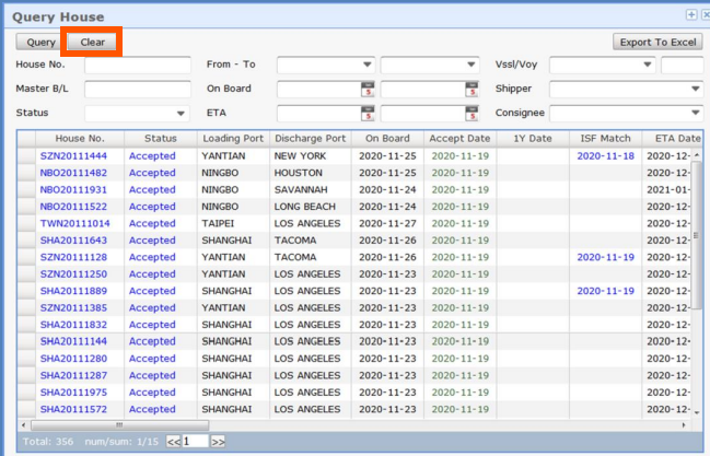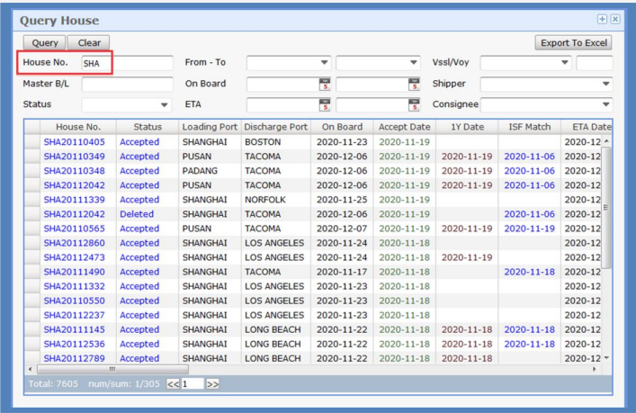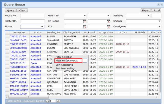 ❖ To filter House B/L where the Loading Port is Shanghai: