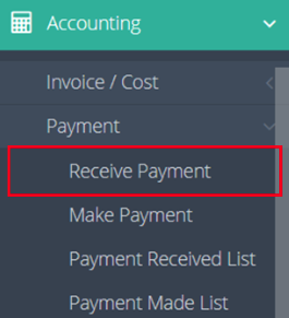 1. Navigate to "Accounting" > "Payment" > "Receive Payment" on the navigation bar.