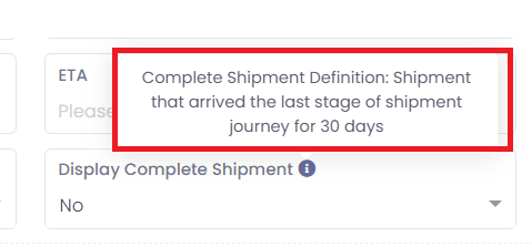 Hover over the information icon next to this field to see how many days are configured in your system for a shipment to be considered “complete.”